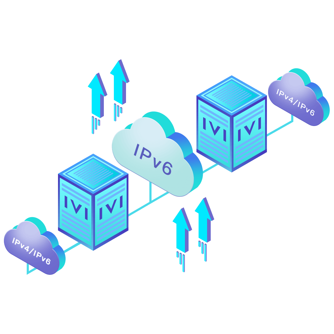 對新建的用戶網絡和業務,應用IPv6升級方案3.0,即使用純IPv6技術方案,通過IVI無狀態翻譯技術仍能與IPv4互聯網相互通信。